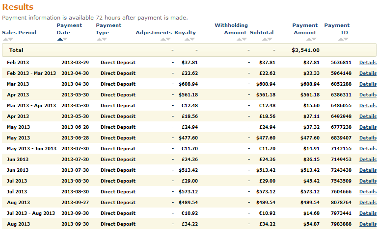 I average around 250 US sales per month on CreateSpace ($500) and something like 100 US Kindle sales per month ($200). When you add that up with the random International royalties (which are only paid out once you have I think $30 available) I’ll generally come out at $850-$950.