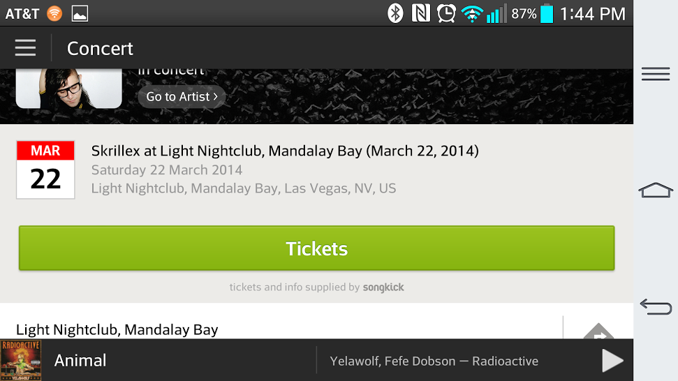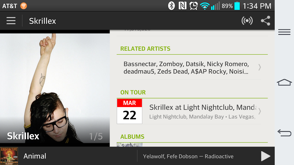 I was in a great mood listening to my man Skrillex, so I pulled up his artist page on the app. Here’s what I found: