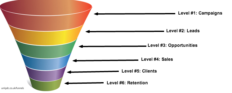 A simple sales funnel with 6 levels.